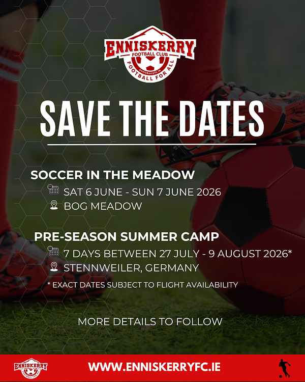 All of us at Enniskerry FC are excited for what 2026 has in store! A few key club dates are already locked in, so you can mark your calendars nice and early: